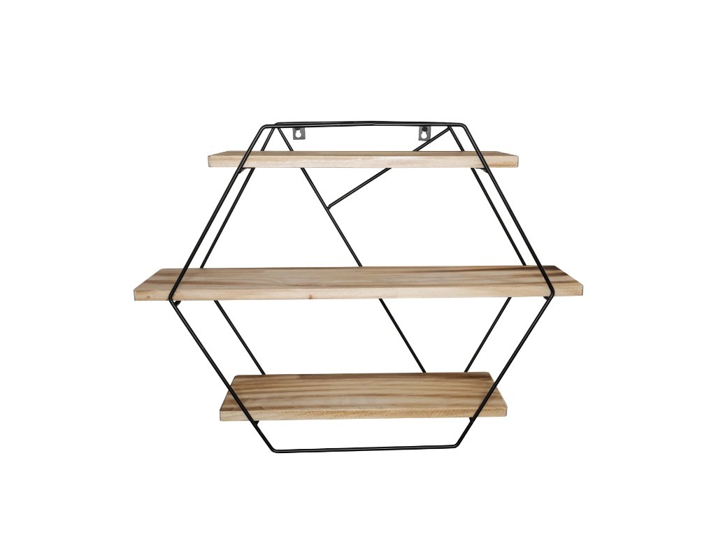 Geometrický design: Tvar hexagonu je vysoce ceněn pro svou schopnost vytvářet zajímavé optické kompozice. Police působí symetricky a vyváženě.